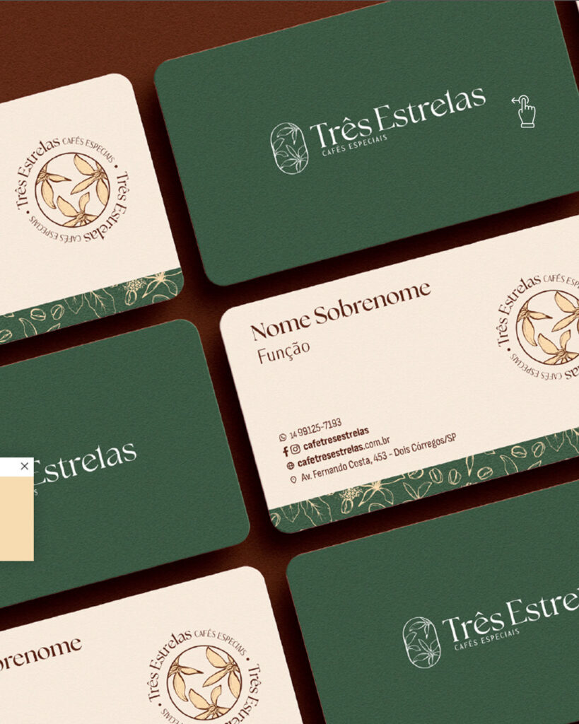 O projeto de branding do Três Estrelas foi desenvolvido para transmitir a qualidade e a autenticidade dos cafés especiais. Com uma paleta de tons terrosos e um design minimalista, cada detalhe da identidade reflete o cuidado e a tradição por trás da marca.